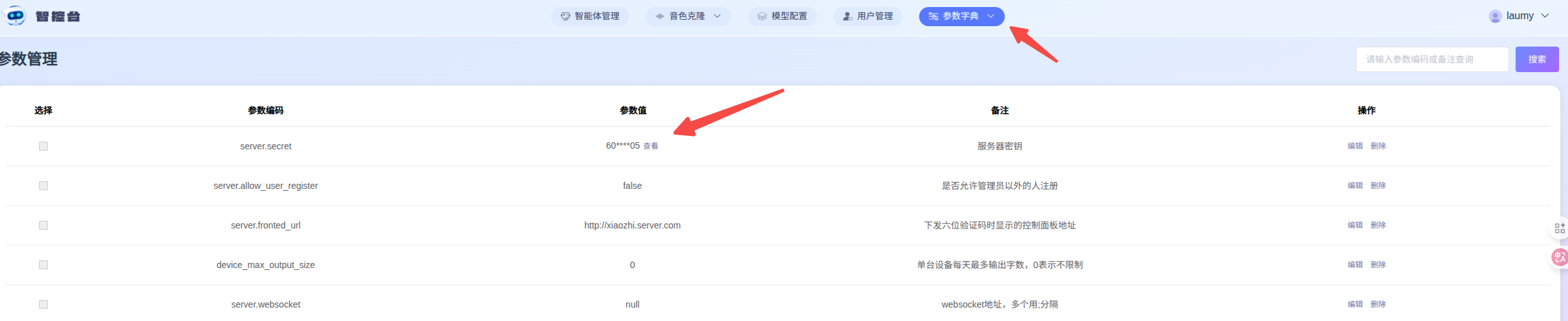 - 登录 → 参数管理 → 找到 server.secret 并复制