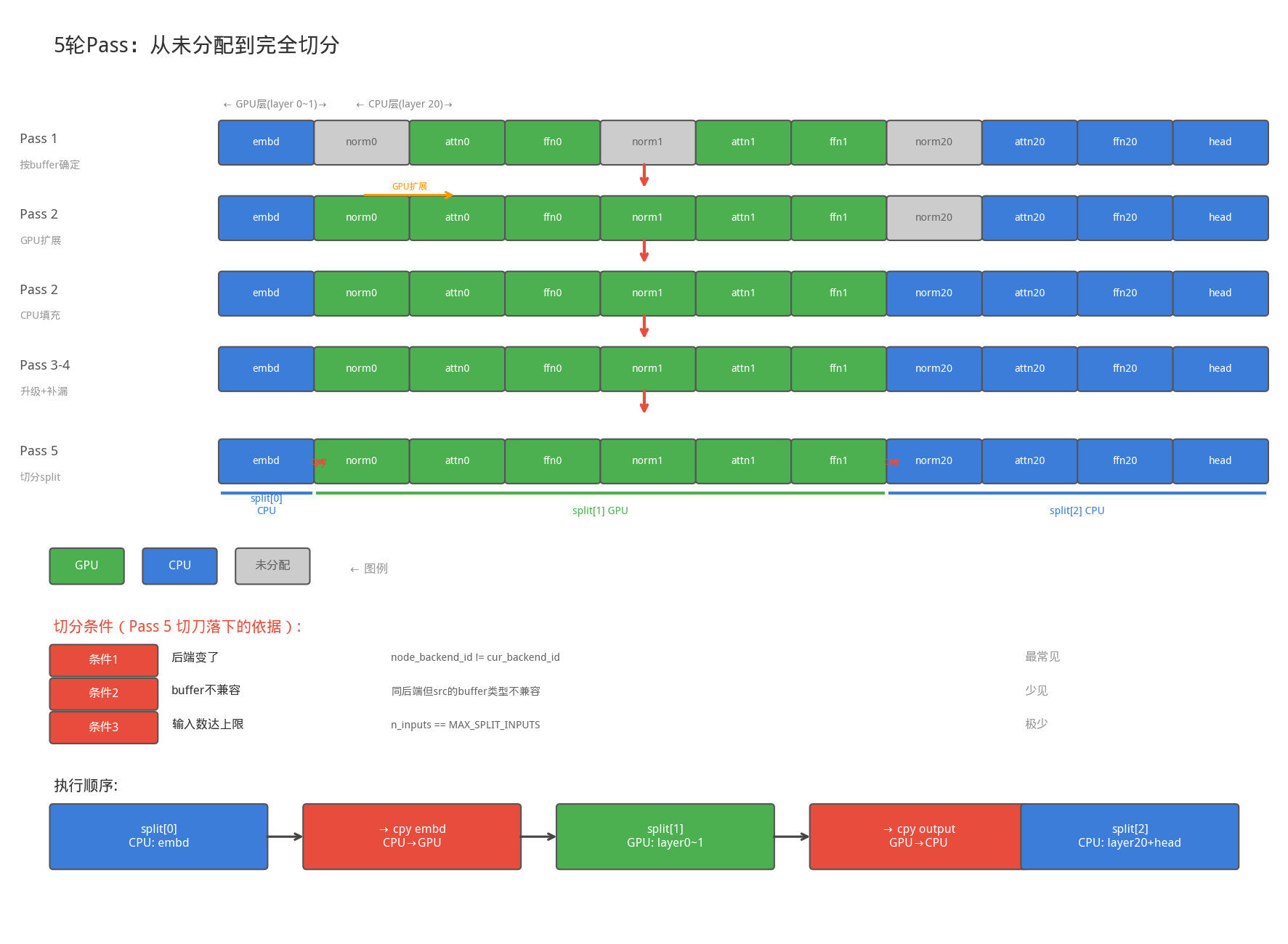 输入层(token_embd) 始终在 CPU(embedding 查表操作 CPU 更高效)