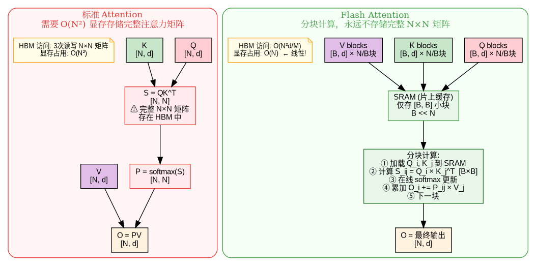 • 永远不在 HBM 中存储完整的 N×N 矩阵